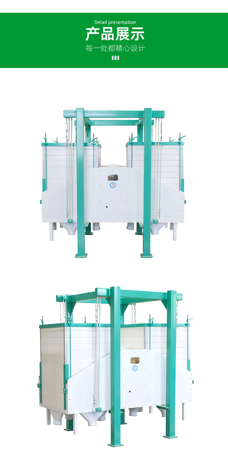 FSFS系列雙倉平篩適用于各種粉粒狀物料的分級篩理,廣泛用于玉米加工廠、玉米淀粉廠、面粉廠、飼料廠等的分級篩理;是非常理想的顆粒物料分級篩理設備。本設備動力小,產量高,密封性能好,無粉塵外揚。