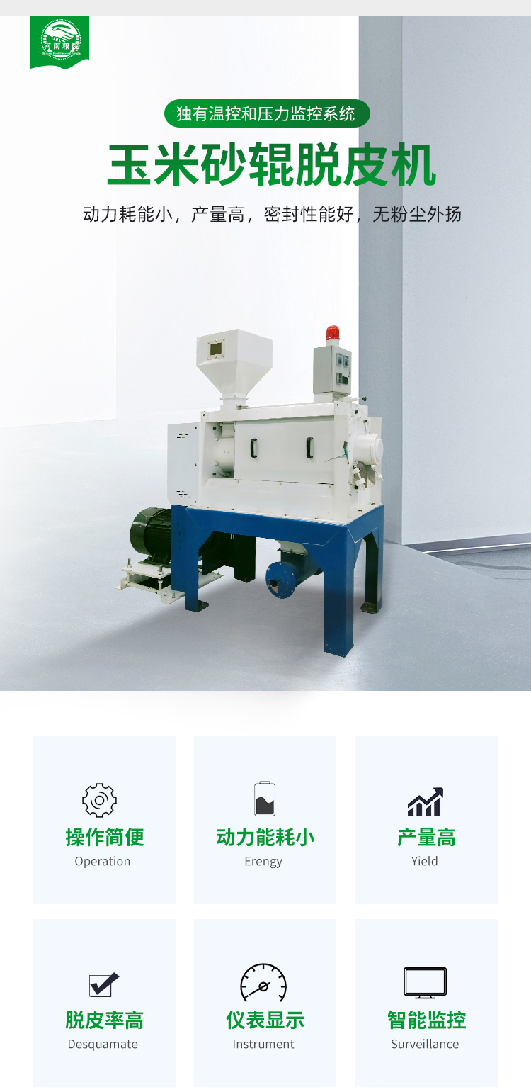 5、特定制作的砂輥形狀,工作能力大,工藝效果好,配套玉米脫皮制糝加工生產(chǎn)線。
