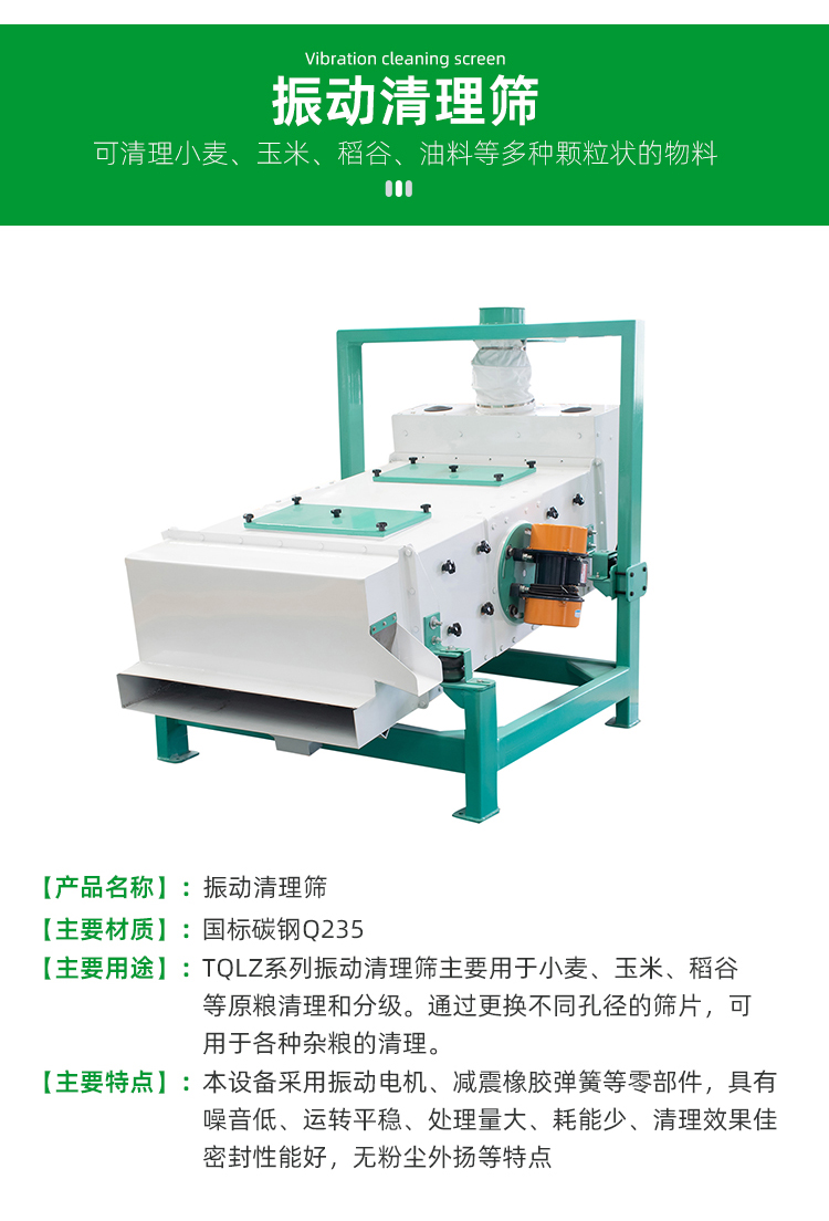 面粉機(jī) 石磨面粉機(jī) 您的位置:首頁(yè) > 產(chǎn)品中心 > TQLZ系列振動(dòng)清理篩