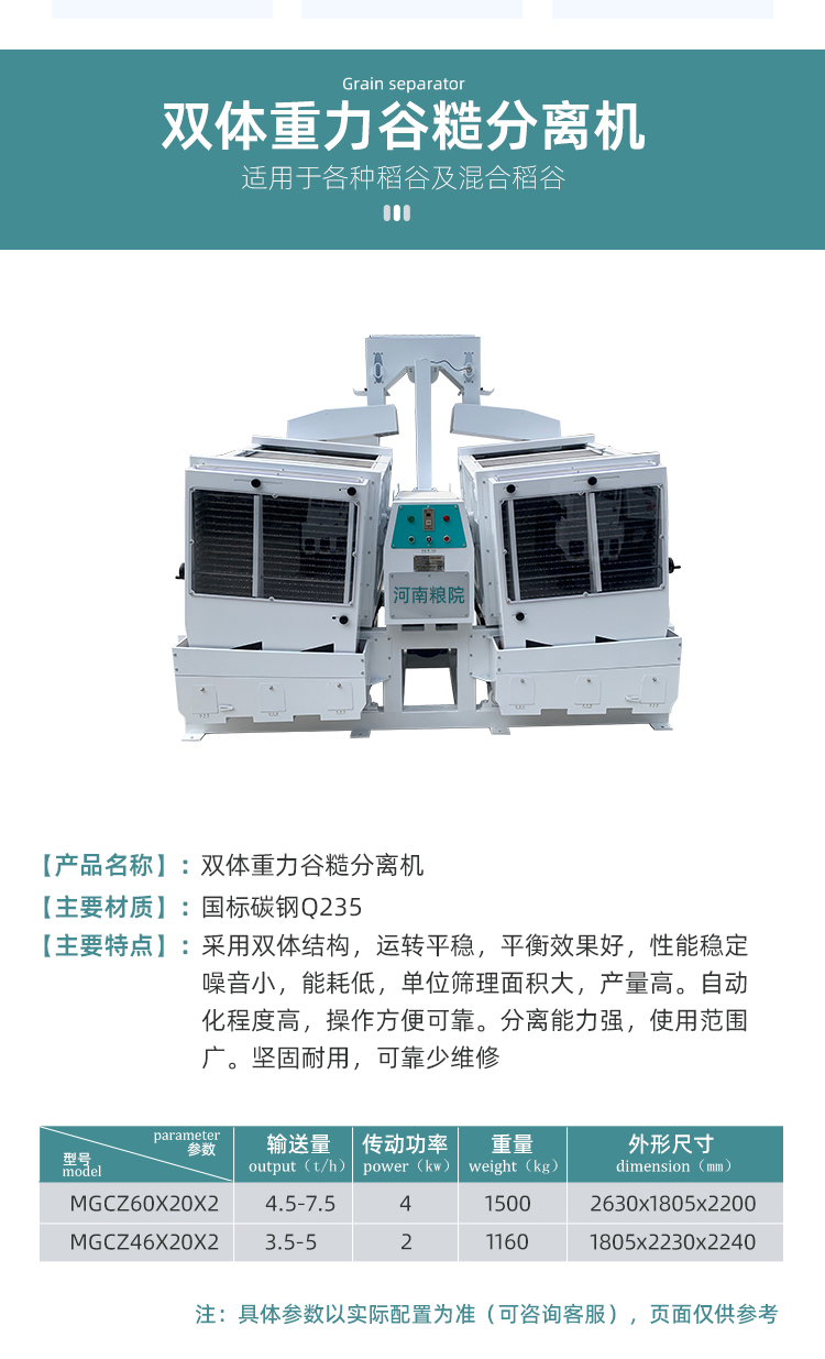 > 雙體重力谷糙分離機