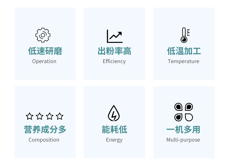 3.低速研磨、低溫加工,原汁原味:不會使淀粉因高溫熟化糊化,蛋白質(zhì)面筋面性沒有改變,維生素微量元素不被破壞,營養(yǎng)成分仍然存在。