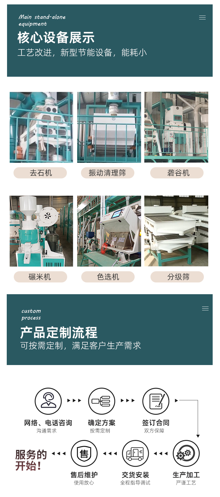 3.產品出品率:小米60-70%米糠30-35%碎米2%總成品率:65-72%